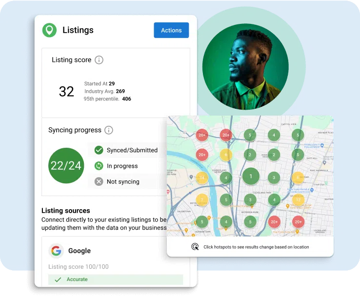 Boost your business’s findability with accurate, consistent business information across hundreds of sites. AI optimizes profiles for maximum visibility and search rankings.