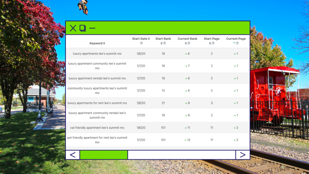 In Carmel, Indiana, a privately owned property management and development company, has provided quality multifamily housing since 2019. When PRAXM first began their SEO campaign with us in January 2020, the portfolio of six apartment communities located throughout the mid-west had ‘0’ keywords ranking well on Google. They signed up for SEO to get even more traction on their new lease-ups offering brand new luxury studios, one-, two-, and three-bedroom apartments for rent.
