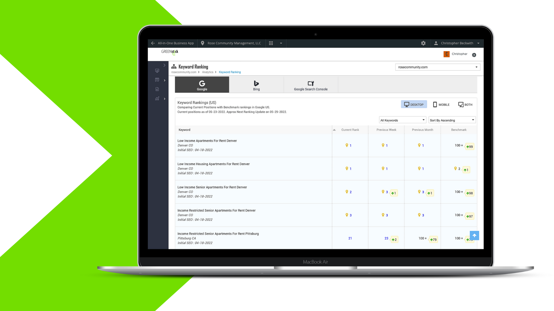 GREENstick Marketing is proud to have partnered with Rose Community Management to help improve its local presence across the USA. When they approached us in March 2022, they were looking to increase their organic rankings and traffic to their centralized leasing website.