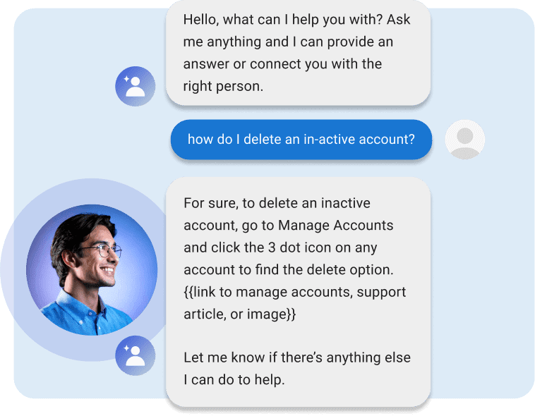 Provide fast, helpful responses through phone, chat, text, or connected sites. Answer questions, promote products and services, book appointments, and handle support issues —all hands-off!
