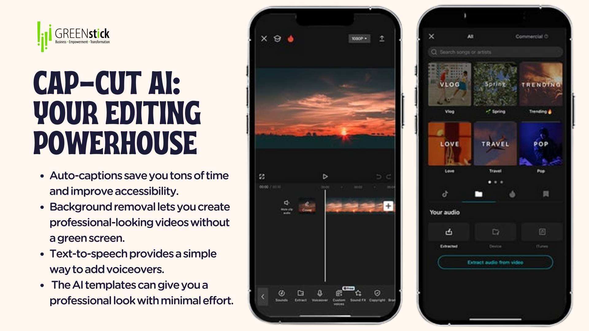 - Background Removal: You can create professional-looking videos without needing a green screen.