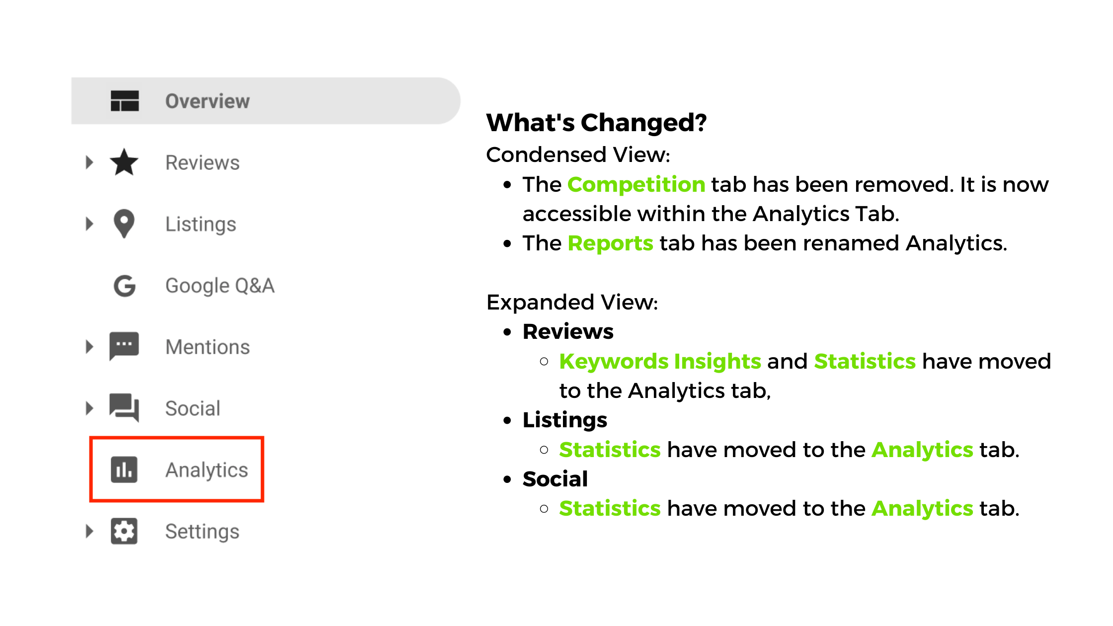 The Analytics tab now features all the reporting and data for your business’ reviews, listings, and competitive analysis. Navigate the analytics dashboards using the new horizontal tabs (highlighted in red): Reviews, Keywords, Competition, Social, and Reports.