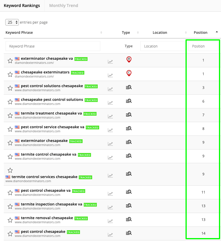 With over 20 years of experience, Diamond Exterminators has built a reputation for reliable customer service and quality pest control and home repair work in Hampton Roads. In May 2019, Diamond Exterminators partnered with Green Stick Marketing with the goal to capture the local market and convert qualified leads through organic search. Our solution for them, Local SEO.