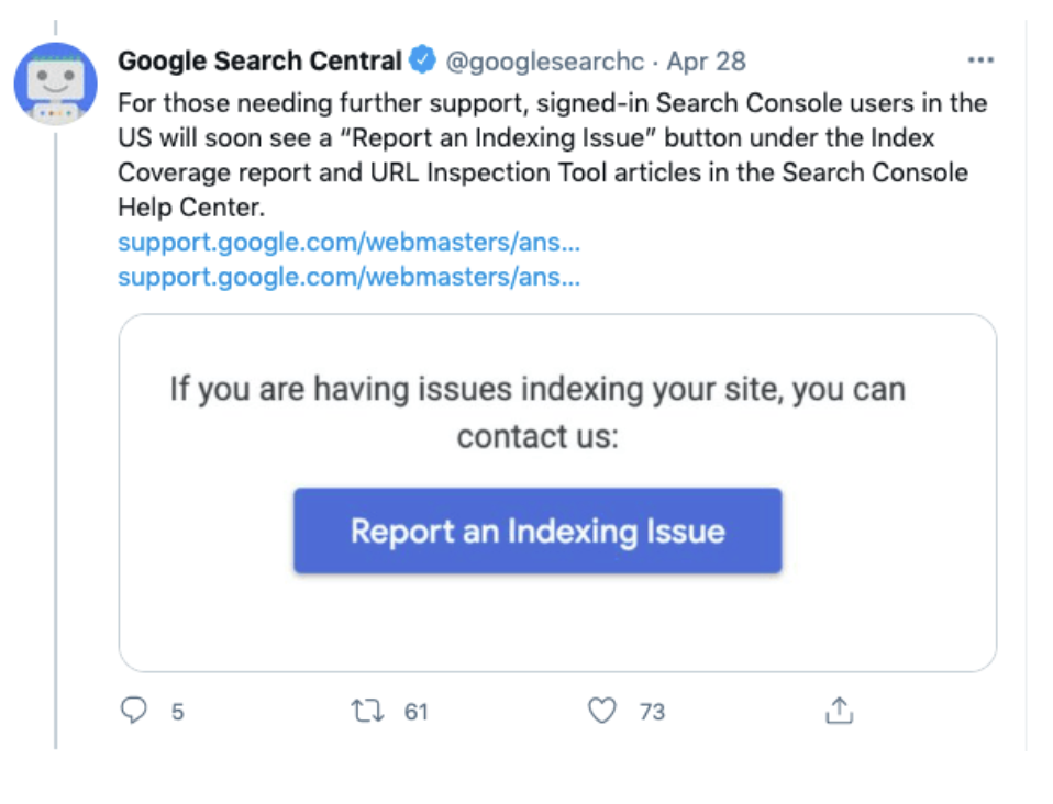 Recently, Google took to Twitter to make an announcement about indexing issues. They said that if anyone living in the U.S. is experiencing indexing issues they can’t figure out, Google has now introduced a channel in which one can report them directly to the Google Search team.