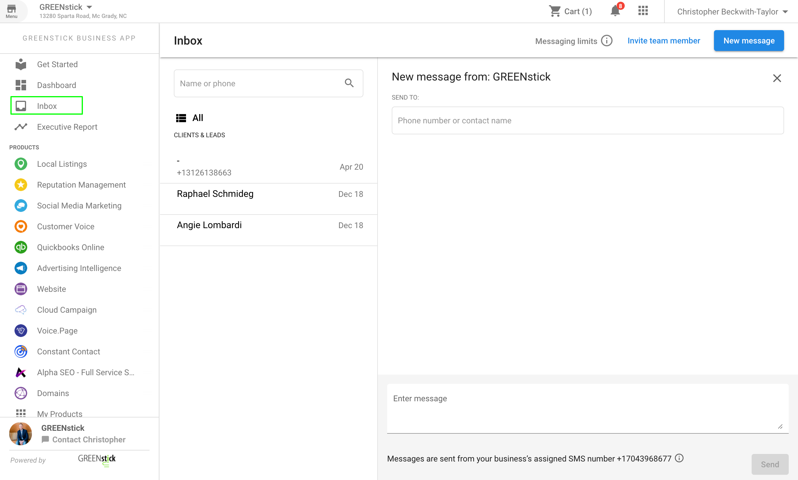 The GREENstick Business App offers a complete platform featuring various solutions for digital marketing, including SMS messaging. Within the Business App, you can manage all SMS customer communication from a single “Inbox.” It’s easy to add team members so multiple employees can collaborate and communicate with customers from the same place.
