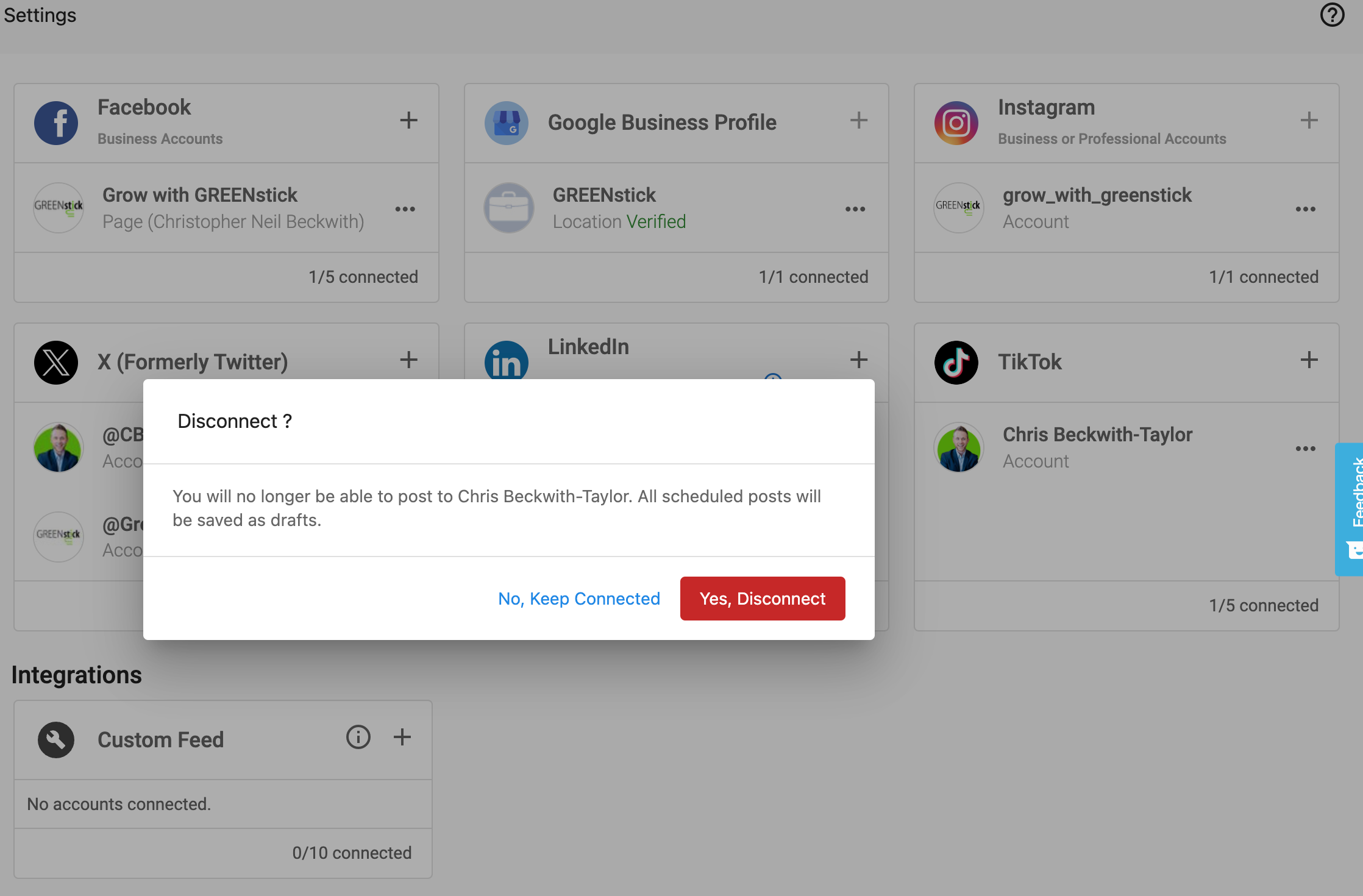 Step 2 – Navigate to Settings > Connect accounts. You can connect up to 5 pages.