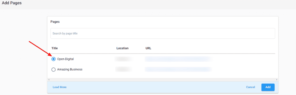 2. Select the additional Facebook Business Page(s) you want to add.