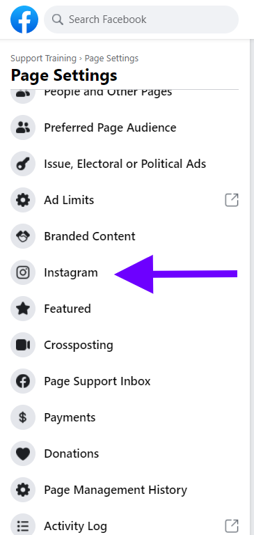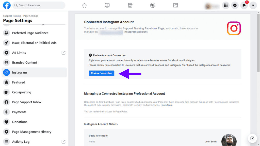 3. Connect your Facebook page to the correct Instagram account